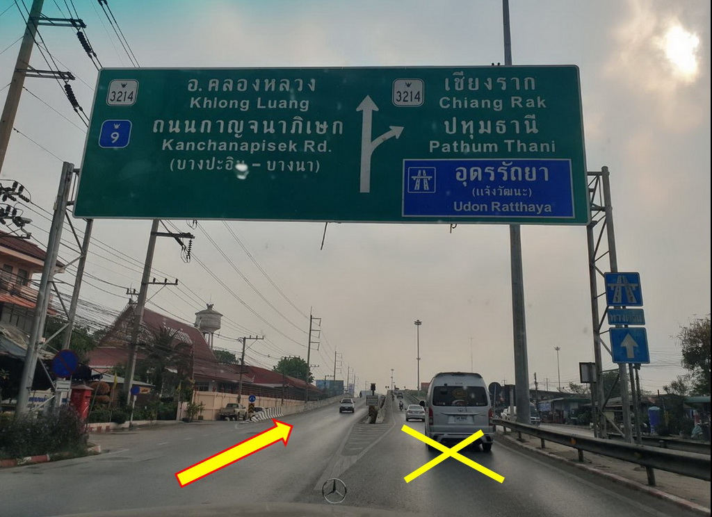 เมื่อเลี้ยวซ้ายมาแล้ว ให้วิ่งตรงไป อ.คลองหลวง อย่าไป ช่องขวานะ